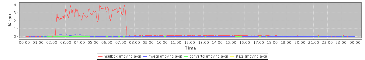 avg(mailbox) = 0.70 avg(mysql) = 0.03 avg(convertd) = 0.00 avg(stats) = 0.00