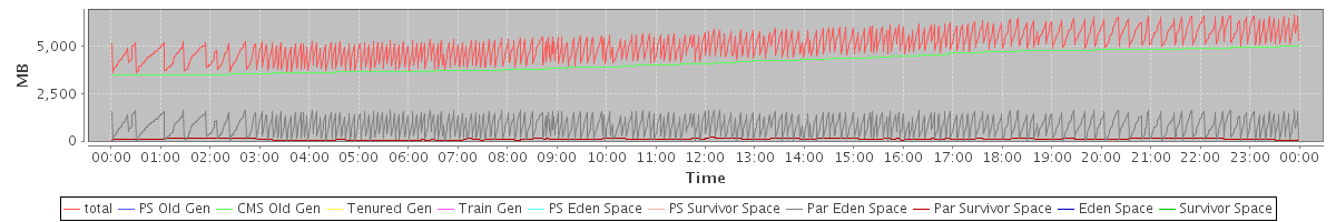 avg(total) = 5077.94 avg(PS Old Gen) = 0.00 avg(CMS Old Gen) = 4177.33 avg(Tenured Gen) = 0.00 avg(Train Gen) = 0.00 avg(PS Eden Space) = 0.00 avg(PS Survivor Space) = 0.00 avg(Par Eden Space) = 801.90 avg(Par Survivor Space) = 98.72 avg(Eden Space) = 0.00 avg(Survivor Space) = 0.00