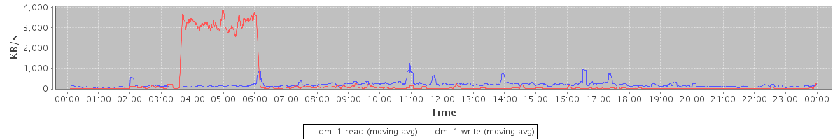 avg(dm-1 read) = 23.43 avg(dm-1 write) = 11.46