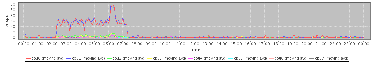 avg(cpu0) = 0.54 avg(cpu1) = 0.47 avg(cpu2) = 0.19 avg(cpu3) = 0.15 avg(cpu4) = 0.14 avg(cpu5) = 0.11 avg(cpu6) = 0.09 avg(cpu7) = 0.10