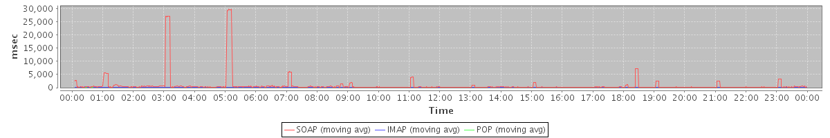 Host zm04.stanford.edu: Mailboxd: Response Time by Client Protocol
