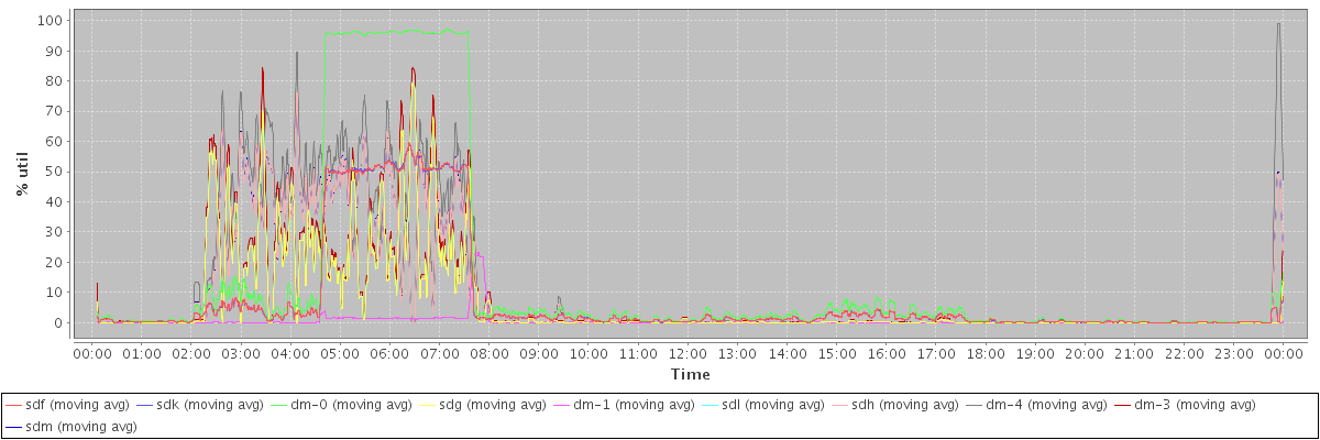 avg(sdf) = 7.65 avg(sdk) = 7.65 avg(dm-0) = 14.21 avg(sdg) = 6.62 avg(dm-1) = 0.57 avg(sdl) = 6.62 avg(sdh) = 8.96 avg(dm-4) = 11.23 avg(dm-3) = 7.47 avg(sdm) = 8.98