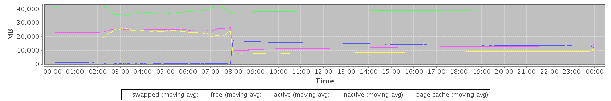 avg(swapped) = 43.86 avg(free) = 9831.55 avg(active) = 38915.52 avg(inactive) = 13121.79 avg(page cache) = 16093.20