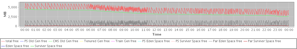 avg(total free) = 4380.74 avg(PS Old Gen free) = 0.00 avg(CMS Old Gen free) = 3453.62 avg(Tenured Gen free) = 0.00 avg(Train Gen free) = 0.00 avg(PS Eden Space free) = 0.00 avg(PS Survivor Space free) = 0.00 avg(Par Eden Space free) = 799.58 avg(Par Survivor Space free) = 127.54 avg(Eden Space free) = 0.00 avg(Survivor Space free) = 0.00
