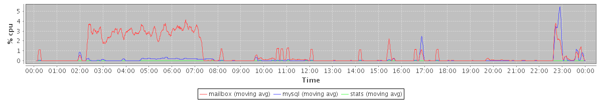 avg(mailbox) = 0.77 avg(mysql) = 0.13 avg(stats) = 0.00
