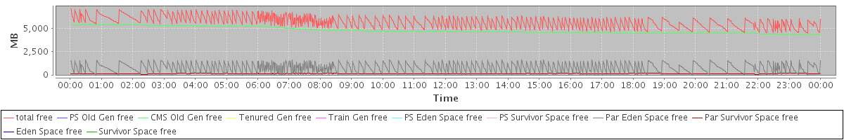avg(total free) = 5708.99 avg(PS Old Gen free) = 0.00 avg(CMS Old Gen free) = 4785.23 avg(Tenured Gen free) = 0.00 avg(Train Gen free) = 0.00 avg(PS Eden Space free) = 0.00 avg(PS Survivor Space free) = 0.00 avg(Par Eden Space free) = 796.26 avg(Par Survivor Space free) = 127.50 avg(Eden Space free) = 0.00 avg(Survivor Space free) = 0.00