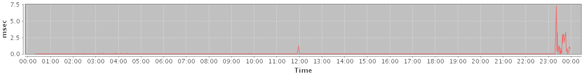 avg(DismissCalendarItemAlarmRequest) = 165.50 avg(AutoCompleteRequest) = 148.37 avg(SendMsgRequest) = 421.50 avg(DeleteAccountRequest) = 9601.25 avg(ConvActionRequest.delete) = 222.00 avg(BackupQueryRequest) = 362.00 avg(GetAggregateQuotaUsageOnServerRequest) = 952.00 avg(BackupRequest) = 1044.50 avg(CreateAppointmentRequest) = 129.00 avg(GetQuotaUsageRequest) = 1100.00