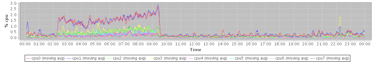 avg(cpu0) = 0.09 avg(cpu1) = 0.09 avg(cpu2) = 0.01 avg(cpu3) = 0.01 avg(cpu4) = 0.00 avg(cpu5) = 0.00 avg(cpu6) = 0.01 avg(cpu7) = 0.00