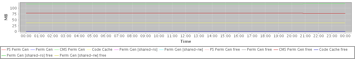 avg(PS Perm Gen) = 0.00 avg(Perm Gen) = 0.00 avg(CMS Perm Gen) = 117.93 avg(Code Cache) = 37.01 avg(Perm Gen [shared-ro]) = 0.00 avg(Perm Gen [shared-rw]) = 0.00 avg(PS Perm Gen free) = 0.00 avg(Perm Gen free) = 0.00 avg(CMS Perm Gen free) = 78.07 avg(Code Cache free) = 0.31 avg(Perm Gen [shared-ro] free) = 0.00 avg(Perm Gen [shared-rw] free) = 0.00