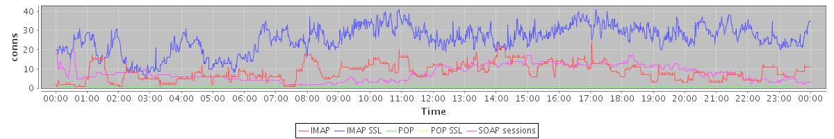 Host zm21.stanford.edu: Mailboxd: Active Connections by Client Protocol
