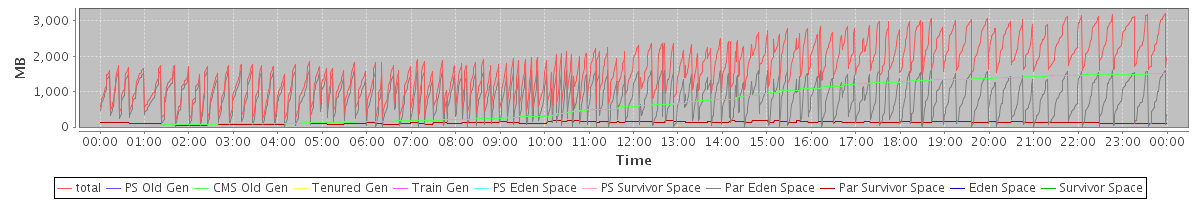 avg(total) = 1639.51 avg(PS Old Gen) = 0.00 avg(CMS Old Gen) = 684.67 avg(Tenured Gen) = 0.00 avg(Train Gen) = 0.00 avg(PS Eden Space) = 0.00 avg(PS Survivor Space) = 0.00 avg(Par Eden Space) = 835.45 avg(Par Survivor Space) = 119.40 avg(Eden Space) = 0.00 avg(Survivor Space) = 0.00
