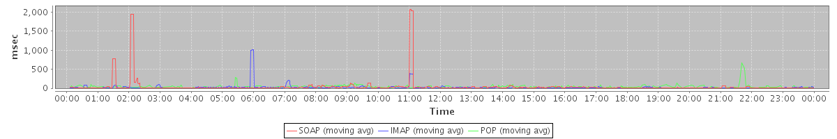 Host zm09.stanford.edu: Mailboxd: Response Time by Client Protocol