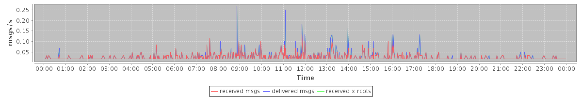 avg(received msgs) = 0.01 avg(delivered msgs) = 0.01 avg(received x rcpts) = 0.01