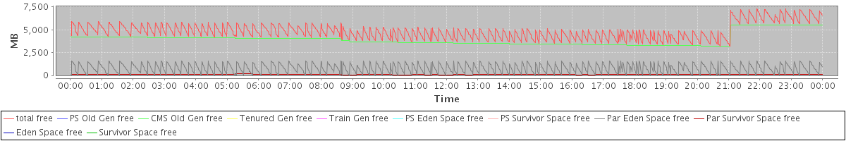 avg(total free) = 4830.22 avg(PS Old Gen free) = 0.00 avg(CMS Old Gen free) = 3943.65 avg(Tenured Gen free) = 0.00 avg(Train Gen free) = 0.00 avg(PS Eden Space free) = 0.00 avg(PS Survivor Space free) = 0.00 avg(Par Eden Space free) = 783.91 avg(Par Survivor Space free) = 102.66 avg(Eden Space free) = 0.00 avg(Survivor Space free) = 0.00