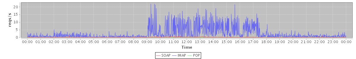 avg(IMAP) = 3.59 avg(IMAP SSL) = 17.46 avg(POP) = 0.00 avg(POP SSL) = 0.01