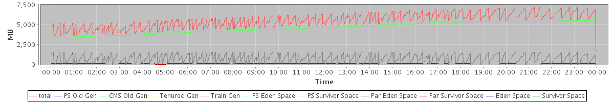 avg(total) = 5577.63 avg(PS Old Gen) = 0.00 avg(CMS Old Gen) = 4627.96 avg(Tenured Gen) = 0.00 avg(Train Gen) = 0.00 avg(PS Eden Space) = 0.00 avg(PS Survivor Space) = 0.00 avg(Par Eden Space) = 809.03 avg(Par Survivor Space) = 140.64 avg(Eden Space) = 0.00 avg(Survivor Space) = 0.00