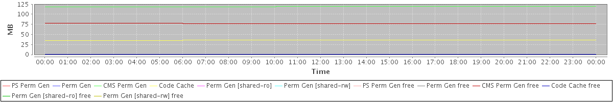 avg(PS Perm Gen) = 0.00 avg(Perm Gen) = 0.00 avg(CMS Perm Gen) = 119.04 avg(Code Cache) = 35.87 avg(Perm Gen [shared-ro]) = 0.00 avg(Perm Gen [shared-rw]) = 0.00 avg(PS Perm Gen free) = 0.00 avg(Perm Gen free) = 0.00 avg(CMS Perm Gen free) = 76.96 avg(Code Cache free) = 0.31 avg(Perm Gen [shared-ro] free) = 0.00 avg(Perm Gen [shared-rw] free) = 0.00