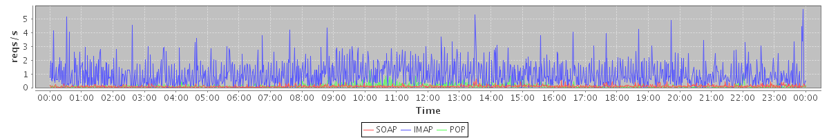 Host zm03.stanford.edu: Mailboxd: Request Rate by Client Protocol
