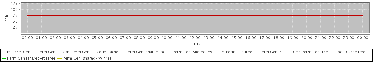 avg(PS Perm Gen) = 0.00 avg(Perm Gen) = 0.00 avg(CMS Perm Gen) = 122.72 avg(Code Cache) = 33.63 avg(Perm Gen [shared-ro]) = 0.00 avg(Perm Gen [shared-rw]) = 0.00 avg(PS Perm Gen free) = 0.00 avg(Perm Gen free) = 0.00 avg(CMS Perm Gen free) = 73.28 avg(Code Cache free) = 0.33 avg(Perm Gen [shared-ro] free) = 0.00 avg(Perm Gen [shared-rw] free) = 0.00