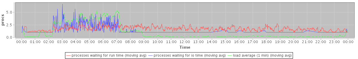 avg(processes waiting for run time) = 1.20 avg(processes waiting for io time) = 0.53 avg(load average (1 min)) = 1.03
