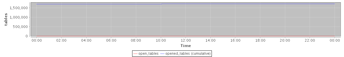 avg(open_tables) = 1182.82 avg(opened_tables (cumulative)) = 1703536.78