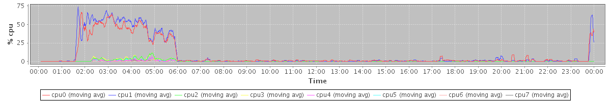 avg(cpu0) = 0.05 avg(cpu1) = 0.05 avg(cpu2) = 0.00 avg(cpu3) = 0.00 avg(cpu4) = 0.00 avg(cpu5) = 0.00 avg(cpu6) = 0.00 avg(cpu7) = 0.01