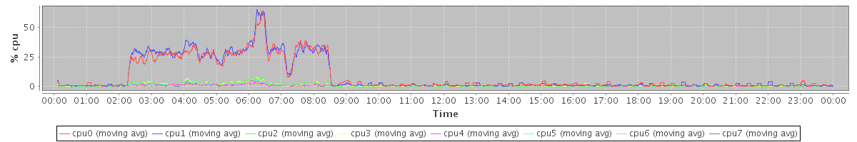 avg(cpu0) = 0.63 avg(cpu1) = 0.59 avg(cpu2) = 0.24 avg(cpu3) = 0.20 avg(cpu4) = 0.17 avg(cpu5) = 0.14 avg(cpu6) = 0.09 avg(cpu7) = 0.11