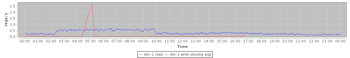 avg(dm-1 read) = 0.01 avg(dm-1 write) = 4.25