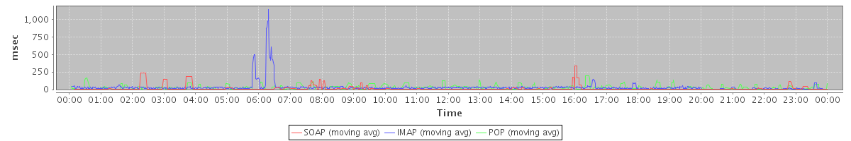 Host zm02.stanford.edu: Mailboxd: Response Time by Client Protocol