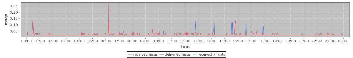 avg(received msgs) = 0.01 avg(delivered msgs) = 0.01 avg(received x rcpts) = 0.01