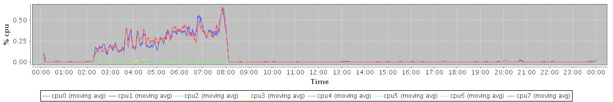 avg(cpu0) = 0.50 avg(cpu1) = 0.47 avg(cpu2) = 0.14 avg(cpu3) = 0.12 avg(cpu4) = 0.08 avg(cpu5) = 0.09 avg(cpu6) = 0.07 avg(cpu7) = 0.04