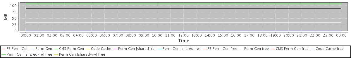 avg(PS Perm Gen) = 0.00 avg(Perm Gen) = 0.00 avg(CMS Perm Gen) = 107.62 avg(Code Cache) = 34.02 avg(Perm Gen [shared-ro]) = 0.00 avg(Perm Gen [shared-rw]) = 0.00 avg(PS Perm Gen free) = 0.00 avg(Perm Gen free) = 0.00 avg(CMS Perm Gen free) = 88.38 avg(Code Cache free) = 0.33 avg(Perm Gen [shared-ro] free) = 0.00 avg(Perm Gen [shared-rw] free) = 0.00