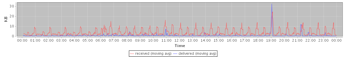 avg(received msgs) = 0.05 avg(delivered msgs) = 0.01 avg(received x rcpts) = 0.06