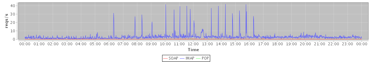 Host zm01.stanford.edu: Mailboxd: Request Rate by Client Protocol