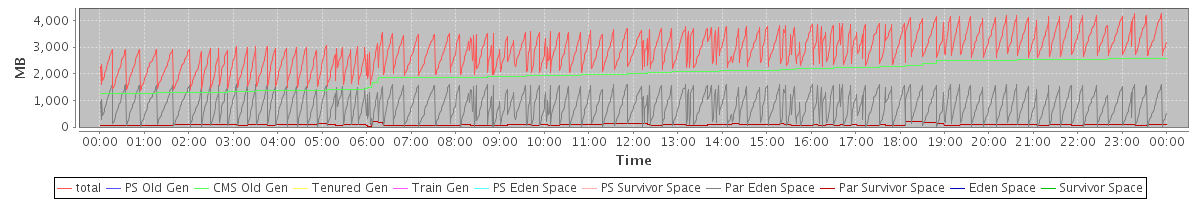 avg(total) = 2853.02 avg(PS Old Gen) = 0.00 avg(CMS Old Gen) = 1962.85 avg(Tenured Gen) = 0.00 avg(Train Gen) = 0.00 avg(PS Eden Space) = 0.00 avg(PS Survivor Space) = 0.00 avg(Par Eden Space) = 803.80 avg(Par Survivor Space) = 86.37 avg(Eden Space) = 0.00 avg(Survivor Space) = 0.00