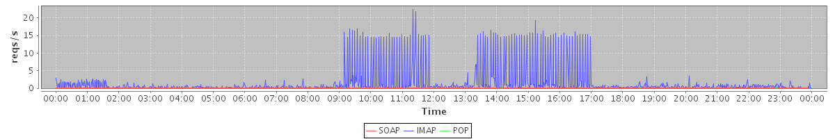 Host zm04.stanford.edu: Mailboxd: Request Rate by Client Protocol
