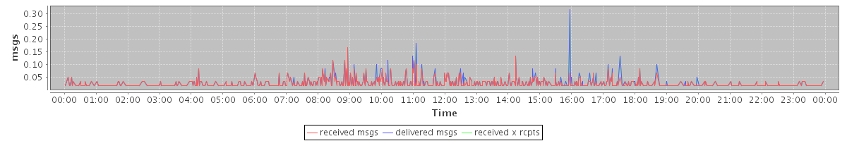 avg(received msgs) = 0.01 avg(delivered msgs) = 0.01 avg(received x rcpts) = 0.01