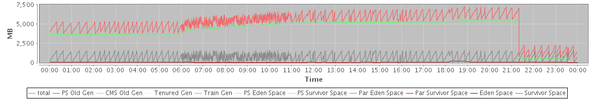 avg(total free) = 2734.41 avg(PS Old Gen free) = 0.00 avg(CMS Old Gen free) = 1792.05 avg(Tenured Gen free) = 0.00 avg(Train Gen free) = 0.00 avg(PS Eden Space free) = 0.00 avg(PS Survivor Space free) = 0.00 avg(Par Eden Space free) = 817.82 avg(Par Survivor Space free) = 124.54 avg(Eden Space free) = 0.00 avg(Survivor Space free) = 0.00