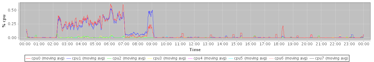 avg(cpu0) = 0.52 avg(cpu1) = 0.56 avg(cpu2) = 0.18 avg(cpu3) = 0.17 avg(cpu4) = 0.12 avg(cpu5) = 0.10 avg(cpu6) = 0.09 avg(cpu7) = 0.06