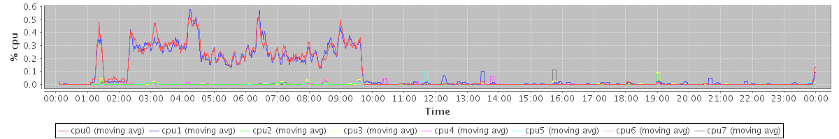avg(cpu0) = 0.09 avg(cpu1) = 0.09 avg(cpu2) = 0.00 avg(cpu3) = 0.00 avg(cpu4) = 0.00 avg(cpu5) = 0.00 avg(cpu6) = 0.00 avg(cpu7) = 0.00