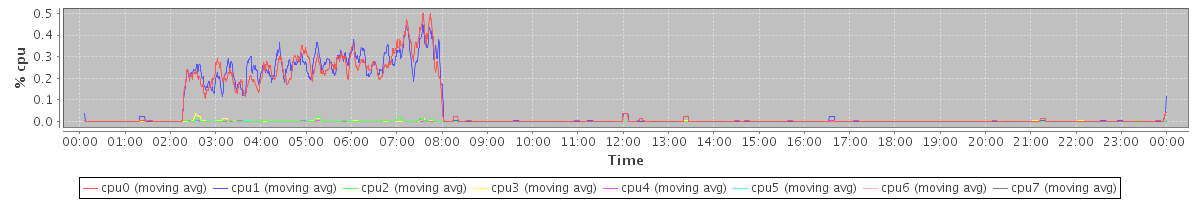 avg(cpu0) = 0.45 avg(cpu1) = 0.46 avg(cpu2) = 0.12 avg(cpu3) = 0.14 avg(cpu4) = 0.07 avg(cpu5) = 0.10 avg(cpu6) = 0.06 avg(cpu7) = 0.08