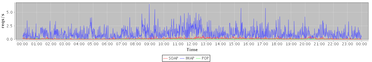 avg(IMAP) = 2.74 avg(IMAP SSL) = 23.33 avg(POP) = 0.00 avg(POP SSL) = 0.00 avg(SOAP sessions) = 6.07