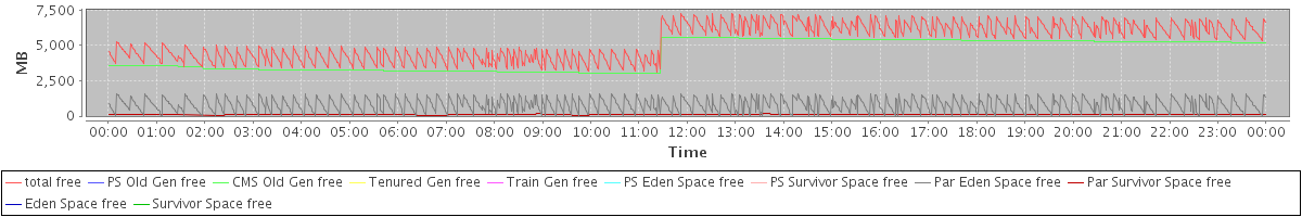 avg(total free) = 5271.87 avg(PS Old Gen free) = 0.00 avg(CMS Old Gen free) = 4350.96 avg(Tenured Gen free) = 0.00 avg(Train Gen free) = 0.00 avg(PS Eden Space free) = 0.00 avg(PS Survivor Space free) = 0.00 avg(Par Eden Space free) = 802.19 avg(Par Survivor Space free) = 118.72 avg(Eden Space free) = 0.00 avg(Survivor Space free) = 0.00