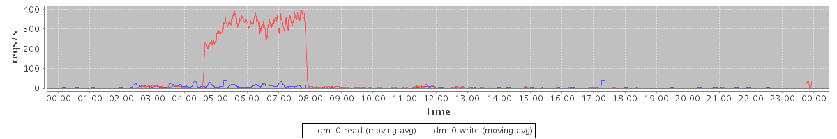 avg(dm-0 read) = 714.47 avg(dm-0 write) = 63.42