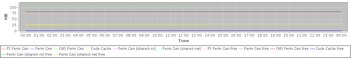 avg(PS Perm Gen) = 0.00 avg(Perm Gen) = 0.00 avg(CMS Perm Gen) = 114.66 avg(Code Cache) = 29.10 avg(Perm Gen [shared-ro]) = 0.00 avg(Perm Gen [shared-rw]) = 0.00 avg(PS Perm Gen free) = 0.00 avg(Perm Gen free) = 0.00 avg(CMS Perm Gen free) = 81.34 avg(Code Cache free) = 0.32 avg(Perm Gen [shared-ro] free) = 0.00 avg(Perm Gen [shared-rw] free) = 0.00