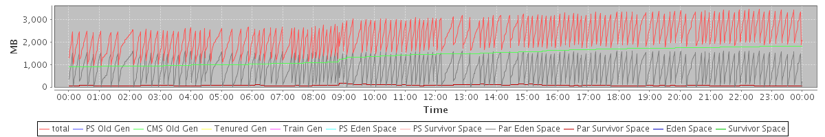 avg(total) = 2271.90 avg(PS Old Gen) = 0.00 avg(CMS Old Gen) = 1382.10 avg(Tenured Gen) = 0.00 avg(Train Gen) = 0.00 avg(PS Eden Space) = 0.00 avg(PS Survivor Space) = 0.00 avg(Par Eden Space) = 816.11 avg(Par Survivor Space) = 73.69 avg(Eden Space) = 0.00 avg(Survivor Space) = 0.00
