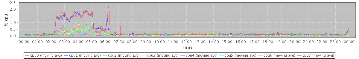 avg(cpu0) = 0.04 avg(cpu1) = 0.03 avg(cpu2) = 0.00 avg(cpu3) = 0.00 avg(cpu4) = 0.01 avg(cpu5) = 0.00 avg(cpu6) = 0.00 avg(cpu7) = 0.00