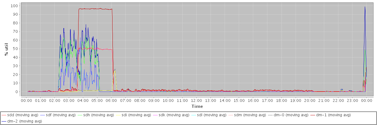 avg(sdd) = 5.77 avg(sdf) = 2.78 avg(sdh) = 5.18 avg(sdi) = 0.39 avg(sdk) = 5.77 avg(sdl) = 2.78 avg(sdm) = 5.18 avg(dm-0) = 0.48 avg(dm-1) = 11.08 avg(dm-2) = 6.43