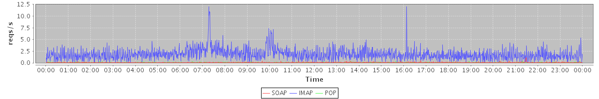 Host zm09.stanford.edu: Mailboxd: Request Rate by Client Protocol