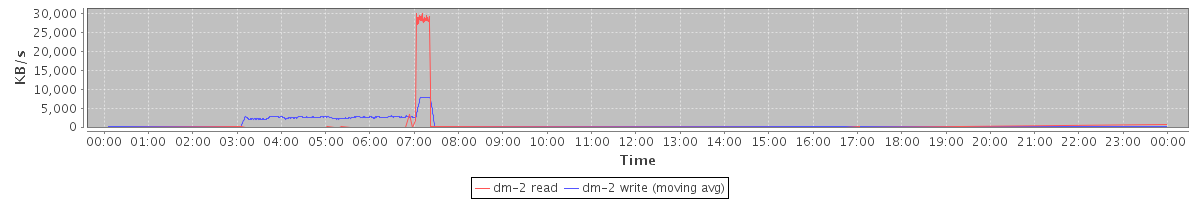 avg(dm-1 read) = 30.12 avg(dm-1 write) = 0.02
